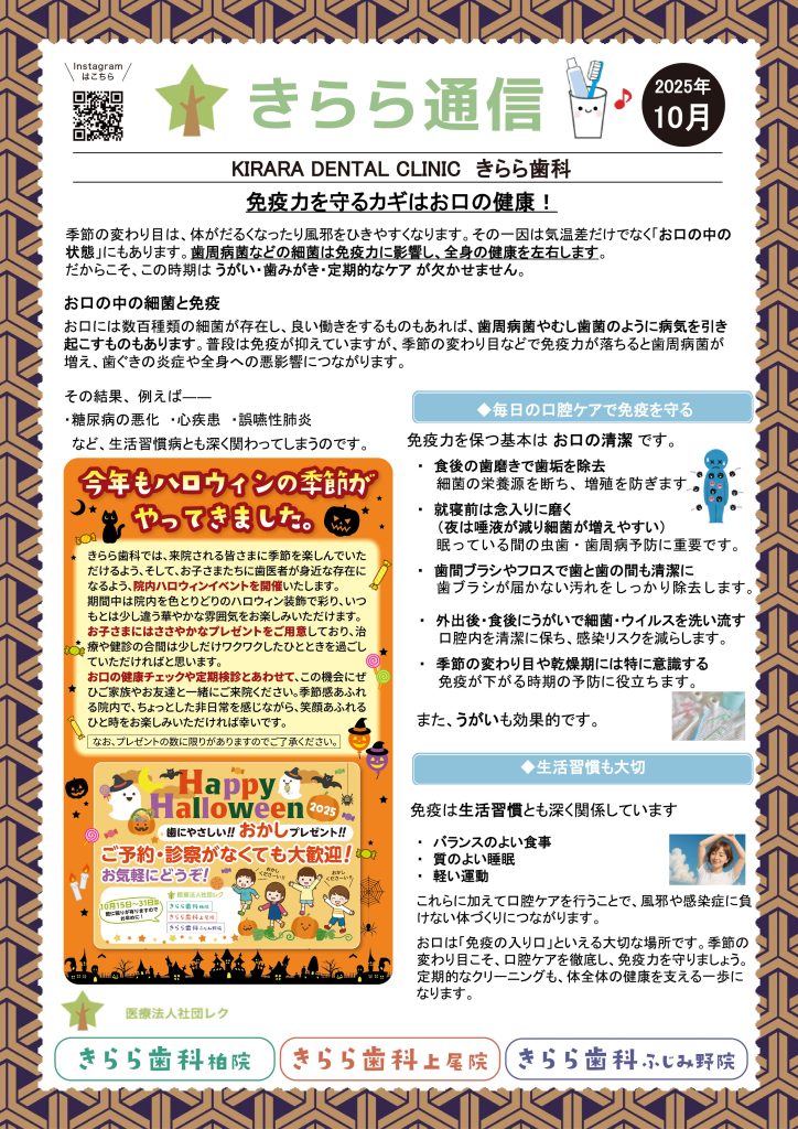 10月は『免疫力を守るカギはお口の健康!』についてです。