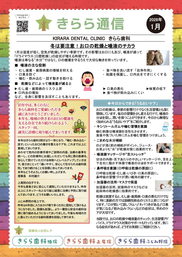 1月は『お口の乾燥と唾液のチカラ』についてです。詳しく知りたい方はお気軽にスタッフにお声かけください!